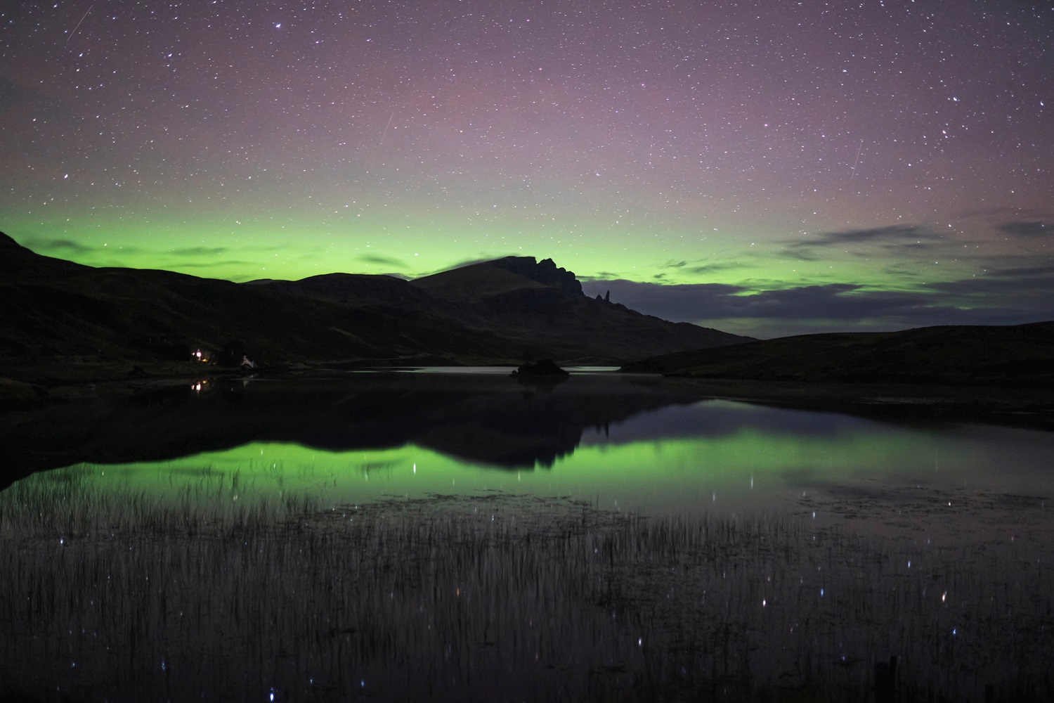 The stunning surroundings, rocky mountains, and sea cliffs make it the perfect site for the spectacle. Many local guides offer tours to chase the lights and stargazing, which adds to the experience. A strong sense of isolation and the stunning landscapes on the Isle of Skye make it an unforgettable location to see the aurora.